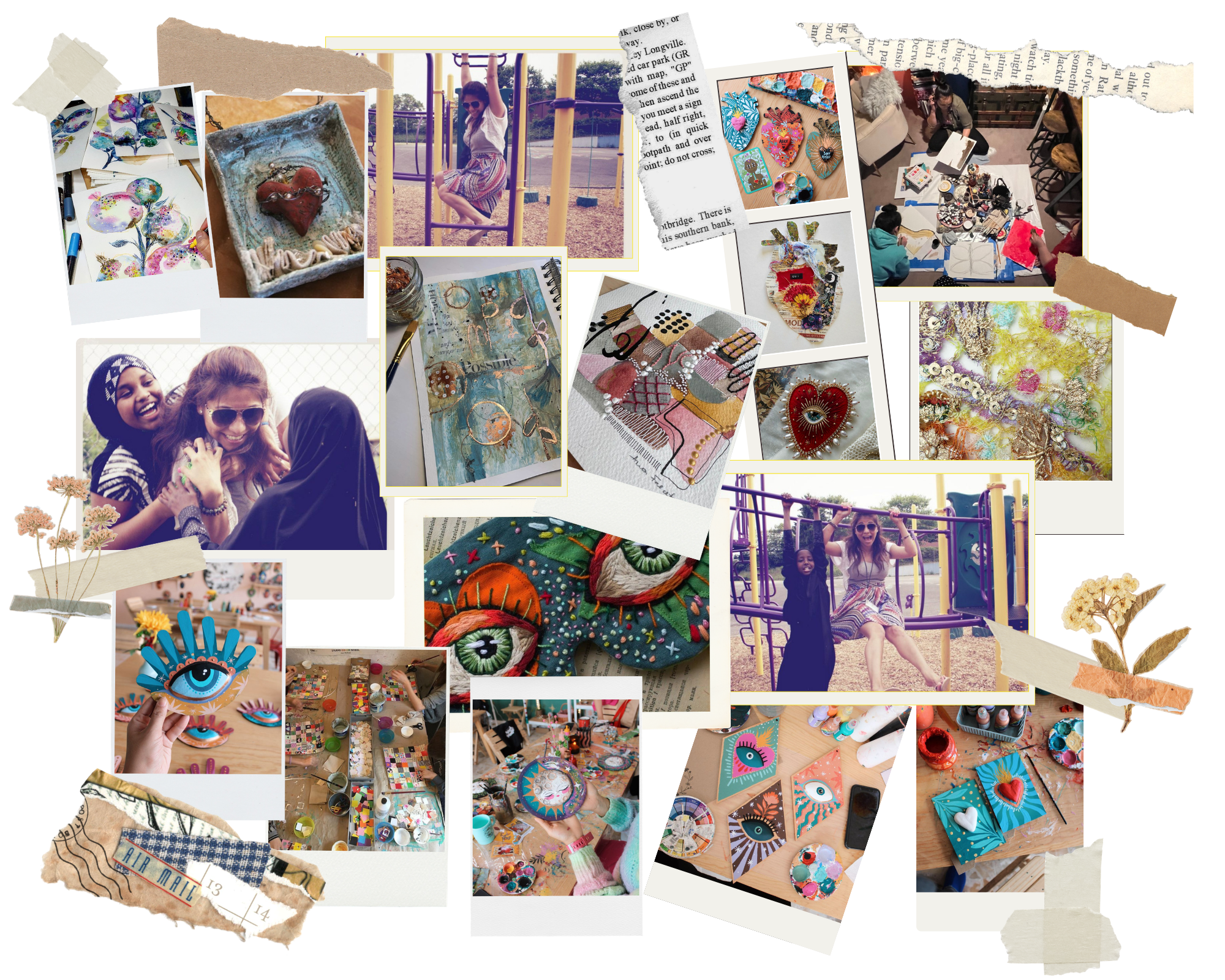 Alongside my studio practice, I facilitate creative learning experiences that invite participants to explore storytelling, observation, and personal expression through art making. My approach combines inquiry based discussion with hands on experimentation using accessible and sensory materials such as collage, found objects, clay, and textiles.